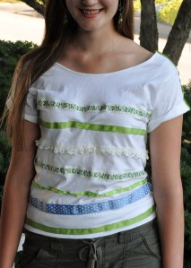 If there was ever a hand made girl it is my daughter. She whipped up this shirt adaption between yesterday & today. The earrings she had already made before.