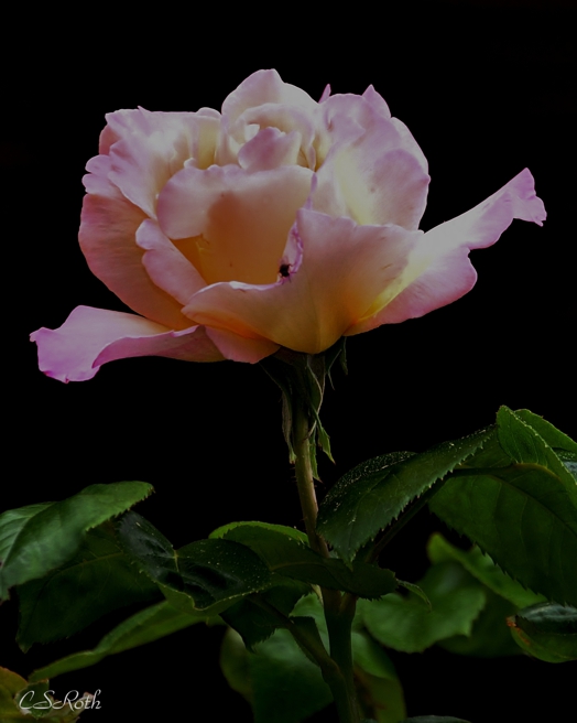 The glass vase’s pattern and light reflection is nice in the second one. – the dark green leaves echo that pattern – staged well